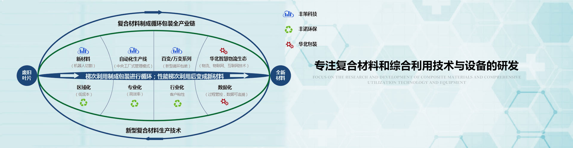 瑞和控股將在集團(tuán)研究院的指導(dǎo)下以集團(tuán)化產(chǎn)業(yè)鏈結(jié)構(gòu)發(fā)展。以豐諾環(huán)?;厥杖~片,用豐策科技